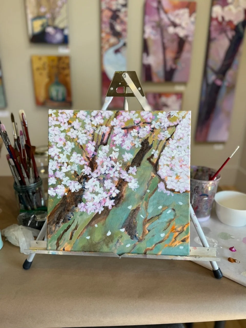 Kathleen showcased the creation of her acrylic painting, Precious Petals, in a live demonstration at Bluerock Gallery during the Most Beautiful Art Tour in Alberta.
